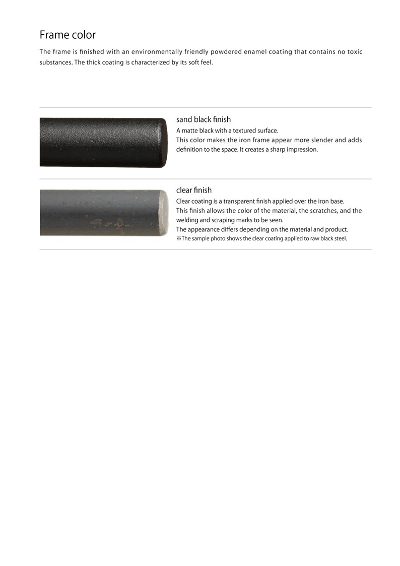 The minimalist composition preserves its structure, the straight right-angled configuration accentuates its slenderness, and the finish makes the most of the expression of the material as it is—This minimalist chair expresses the “possibilities of iron” through a careful examination of techniques.The arms made of wrought iron that allows you to feel the handiwork of the craftsman.