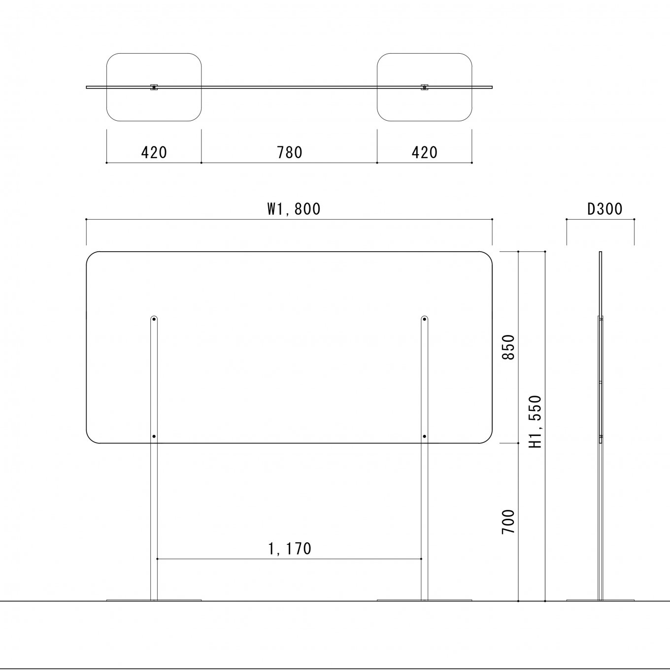 Size:W1800 D300 H1250