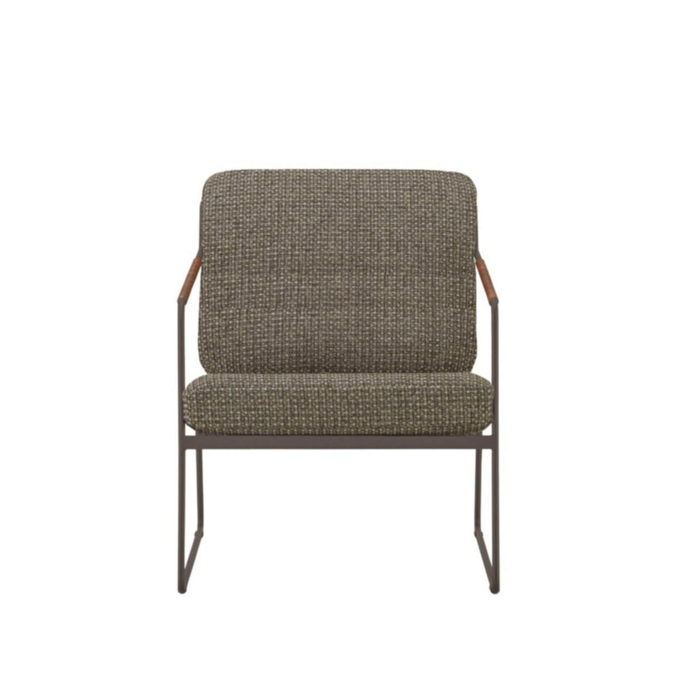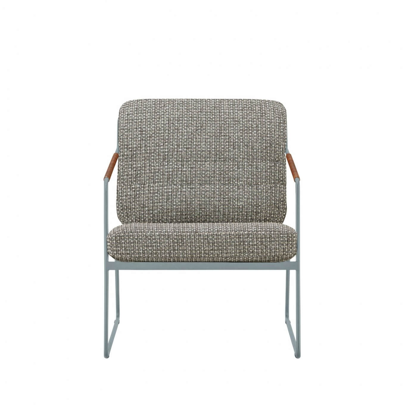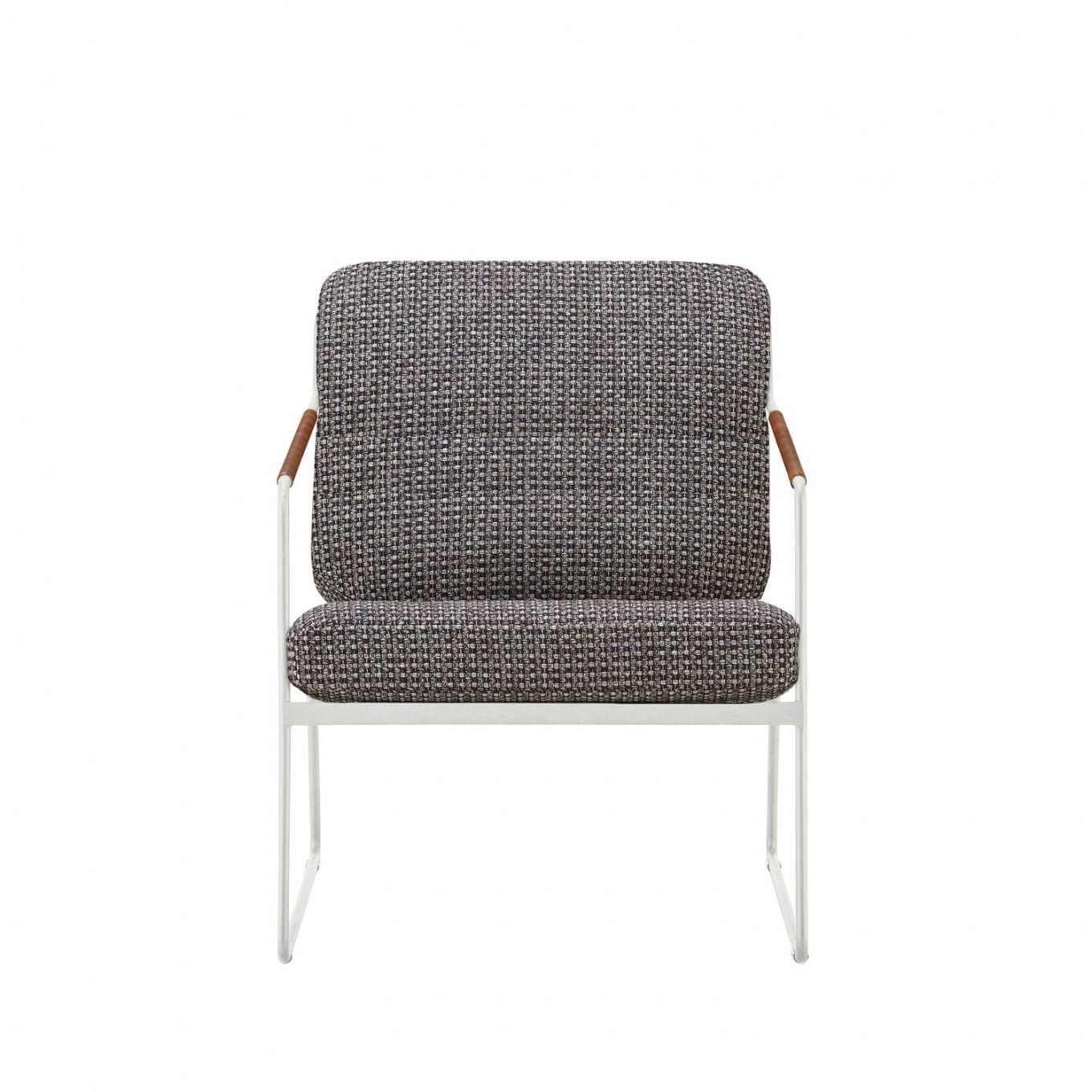 The Lounge Chair is a chair designed to be beautiful no matter where you look at it in a 360° angle, and the flat bar that makes up the back plays an important role in both structure and design, exploiting the continuous nature of the frame that characterizes the entire Felice series. The leather straps wrapped around the arms also contribute to the chair’s soft character.